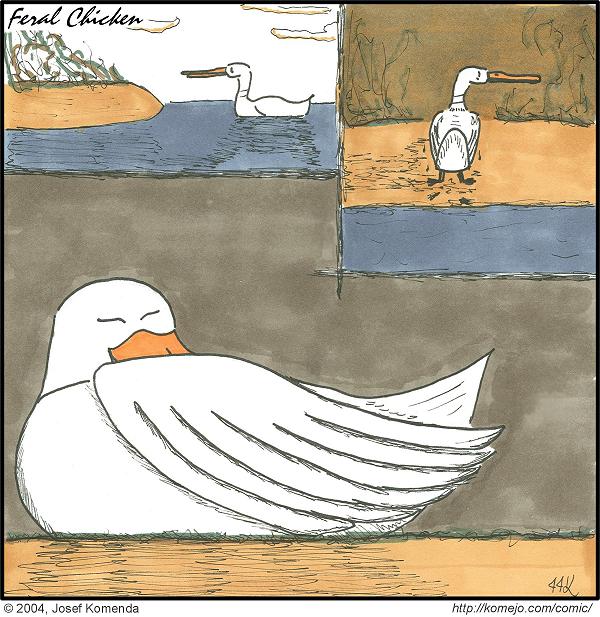 Bill sleeps on a little island in the middle of the lake - he never has to worry about those darn cats that way. It's the end of a good week of fun drawing. Back to silly toons (with dialog!) on Monday.