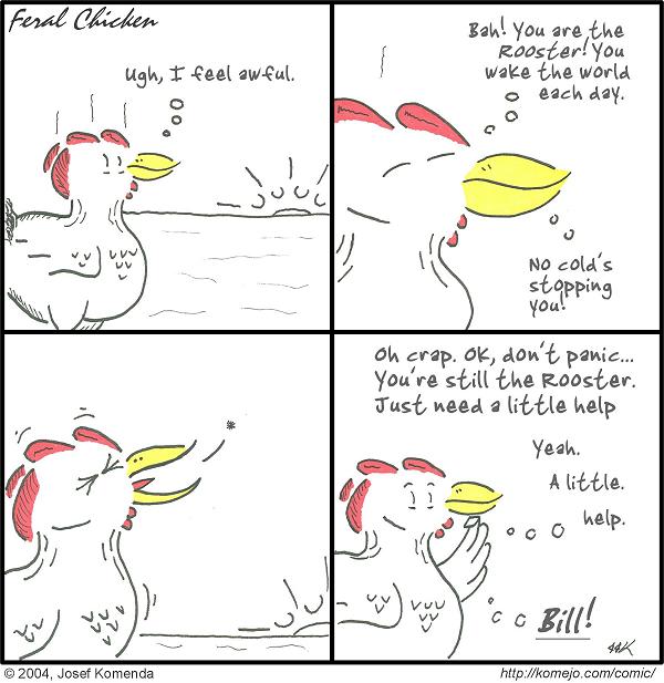 Looks like a little sore throat trouble there! There will be break in the storyline for a New Year's strip, but then back in for this storyline for another week or two. Yes, I totally forgot to color the sun. Meh.