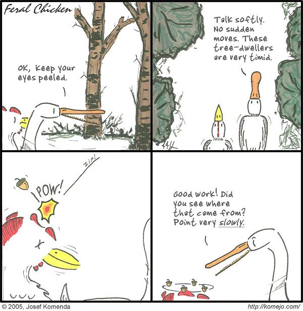 The trees were done using my new brush pen - I'm not completely happy with it, but I like the effect there. My favorite part is the little acorns around Sam's head in panel four. They took forever to draw!